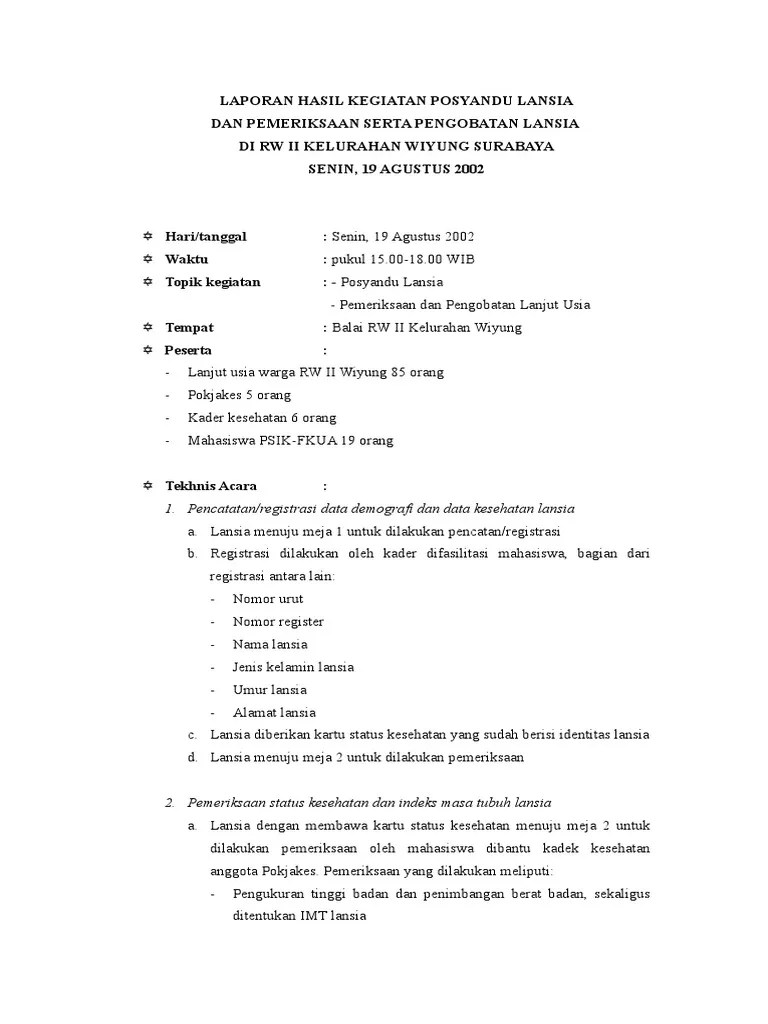 Kelompok tani dibentuk berdasarkan surat keputusan dan dibentuk dengan tujuan sebagai wadah komunikasi antarpetani. Laporan kegiatan refreshing kader posyandu docx. View contoh isi k0.bkl.15.pdf from nur misc at university of mataram. kader posyandu desa / lurah. Rencana kerja bidan desa gihang.